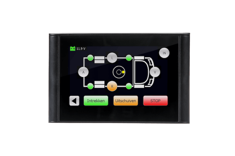 Een touchscreen technologie voor waterpassystemen, die het systeem uitzonderlijk flexibel en compact maakt. Geen gedoe meer met ingewikkelde bedieningen of stappen voor het nivelleren van uw voertuig. Het display toont precies welke stappen u moet nemen en welke op dat moment worden uitgevoerd. Met slechts één druk op de knop wordt uw voertuig snel waterpas gesteld.