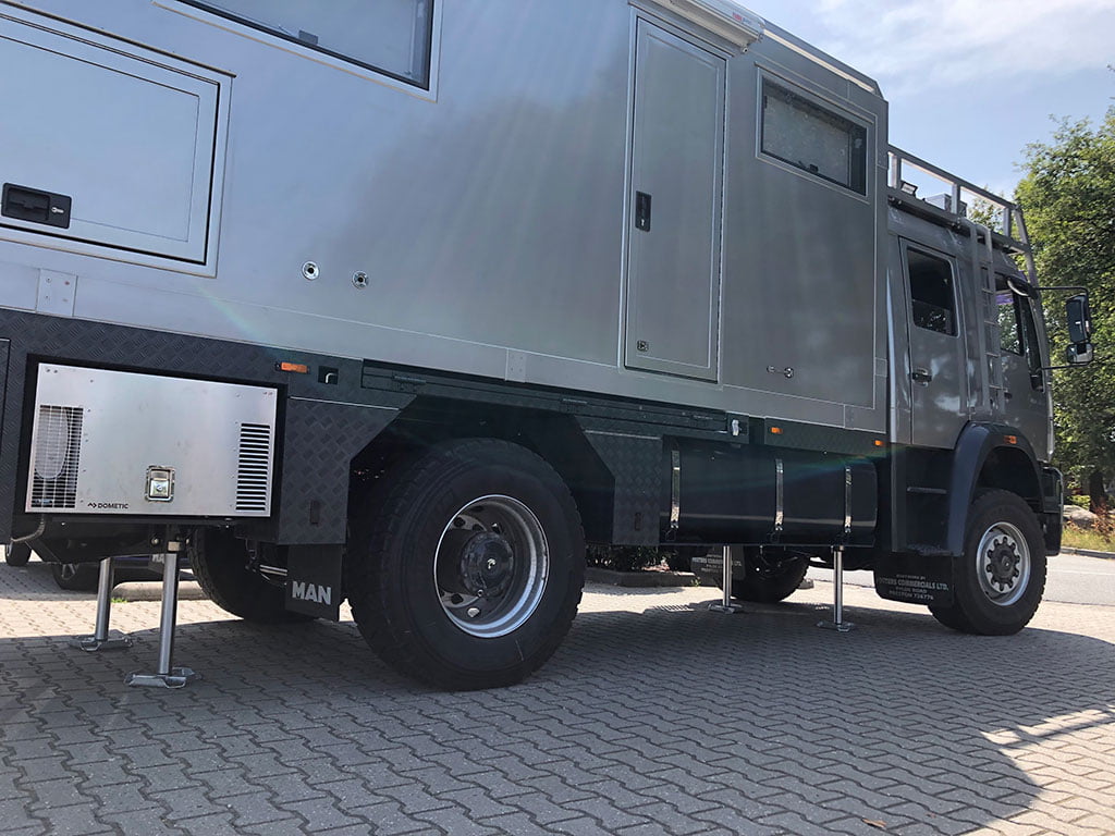 Het automatisch waterpassysteem is de nieuwste innovatie op het gebied van voertuignivellering. Dit systeem biedt ongeëvenaard gebruiksgemak en precisie. Met slechts één druk op de knop brengt het uw voertuig binnen 90 seconden perfect waterpas. Dit volledig automatische systeem, voorzien van vier robuuste krikken en een intuïtief touchscreen, zorgt voor een moeiteloze bediening en optimale stabiliteit, ongeacht de ondergrond.